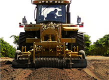 As soil flows over the vibrating wings it crumbles as it falls. The movement promotes the blending of compost and ameliorants down into the profile. Two passes produce a consistent tilth with ameliorants blended into the profile 3ft - 4ft Soil compaction is reduced significantly using the Caterpillar Challenger Track Layer (7psi).
